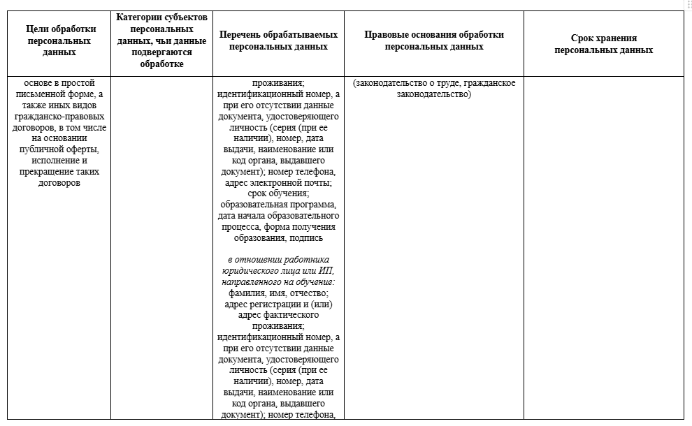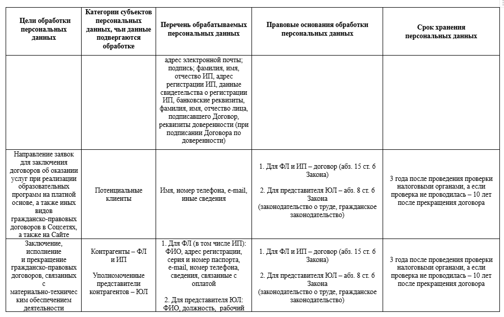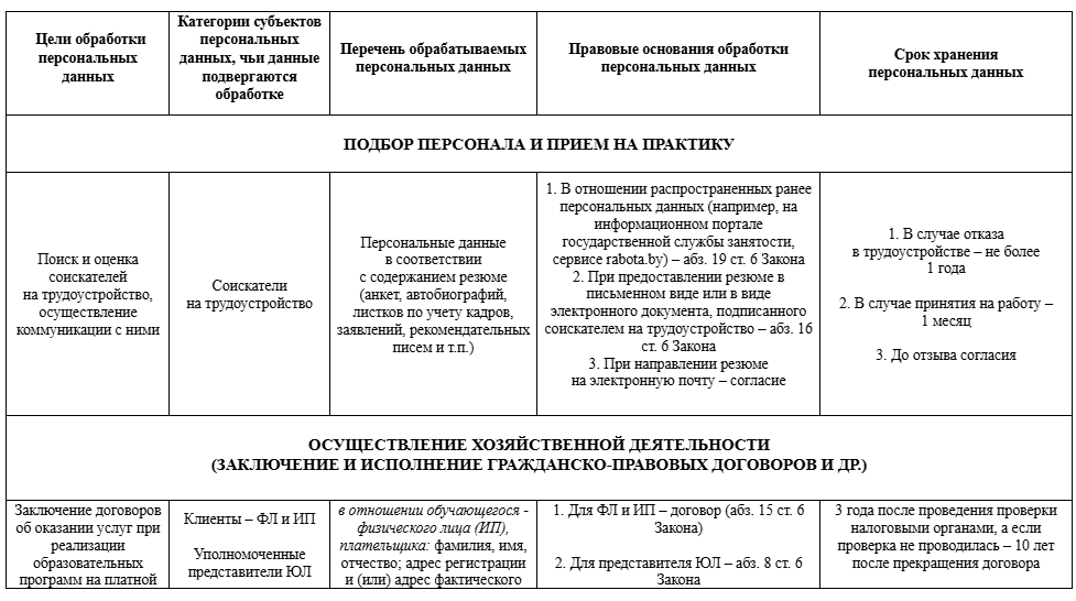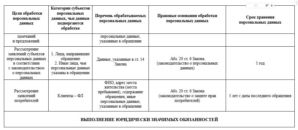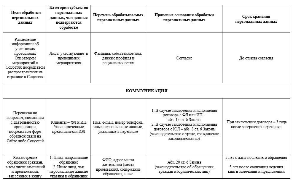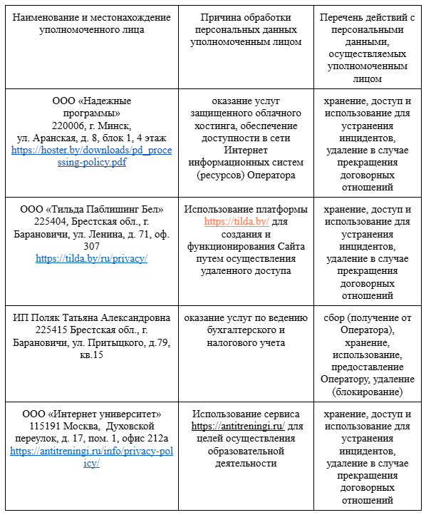 3.4. Оператор предоставляет персональные данные иным лицам в целях согласно Приложению 1, в частности РУП «Белпочта» с целью направления почтовой корреспонденции.