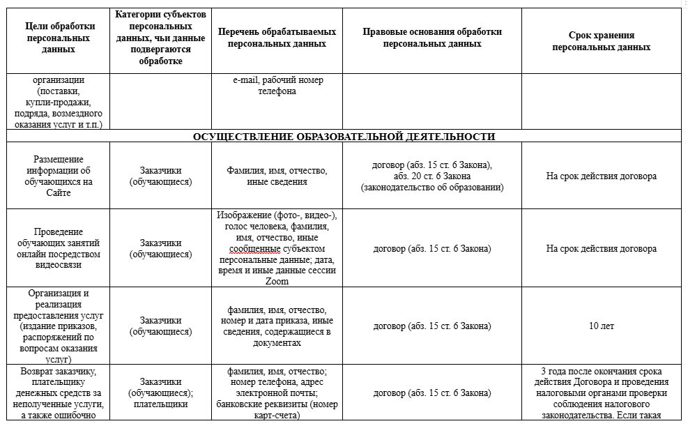2.4. Оператор осуществляет обработку персональных данных работников, их близких родственников, членов семей в целях, объеме, на правовых основаниях и в сроки в соответствии с приложением 1 к настоящей Политике.